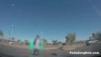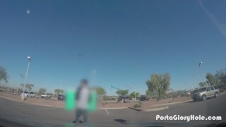 Компания молодых людей останавливается на заправке (ребята путешествуют на машине). Во время долгой дороги парни устали, а их очаровательная спутница помогла им расслабиться. Шлюшка зашла в биотуалет, стоящий посередине, и стала ждать. И вот один из парней просунул свой вялый писюлек в дырку в стене (сразу понятно, что это далеко не первые путешественники, которые додумались до минета в туалете), и оральными ласками симпатяга в очках помогла быстро достичь эрекции, а потом и оргазма. Так поступила милашка и с остальными спутниками.