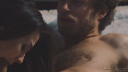 Наступила ночь, но только молодая пара спать не спешит ложиться - есть еще одно важное дело, которое поспособствует здоровому крепкому сну. Кучерявый мужчина мастерски возбуждает свою прекрасную подругу - неторопливо лижет ей киску и, практически доведя девушку до оргазма, прекращает свои ласки (молодой мужчина, зная о ненасытности подруги, специально так поступает). Малышка с аппетитными сиськами в свою очередь ласкает член, после чего садится на него своей дырочкой. Отстроченный оргазм заставляет испытывать девушку более сильные эмоции во время нежного соития. Практически все время ребята смотрят друг другу в глаза и это позволяет любовникам наиболее тонко чувствовать друг друга, не замечая ничего вокруг. Может по этой причине любовники не видят девушку, которая все время наблюдает за парочкой.