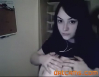 Влюбленным парочкам находиться друг от друга довольно сложно, поэтому достаточно часто ребята прибегают к виртуальному сексу, ну или его подобию. Симпатичная брюнеточка, общаясь со своим парнем по скайпу, продемонстрировала ему аппетитные дойки, удовлетворив подобным образом потребность молодого человека. Ну и вам, дорогие зрители, выпал шанс полюбоваться большой грудью, которую милашка мнет.