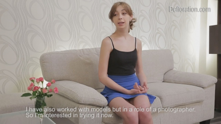 Давно мечтавшая попробовать себя в качестве модели девушка еле дождалась дня, когда ей исполнится 18. И вот уже на следующий день своего совершеннолетия стройняшка оказывается на кастинге в студии. Живо отвечая на все вопросы "экзаменатора" девушка дает вполне полноценные и объемлемые ответы, но слегка стесняется камеры. Помня о своей цели милашка все же выполняет все просьбы доброй женщины, голос которой звучит за кадром, среди которых было получение оргазма. Очаровательная девушка с маленькими упругими сисечками удобно устроилась на диванчике и потеребив клиторок, испытала наслаждение.