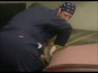 Симпатяга с большими сиськами дрочит перед черным роскошным лимузином на парковке, в котором, кстати говоря, сидят две богатые дамы и мужчина. Сначала девушка медленно раздевается перед лобовым стеклом машины и начинает неторопливо ласкать киску. Но симпатягу спугнули два мужчины, которые спустились на паркинг за своей машиной. Когда ребята уехали, сисястая брюнетка вышла из своего укрытия, прилепила к стеклу лимузина резиновый член и начала насаживаться на него. Телка в чулках довела себя до оргазма и кончила струйками.