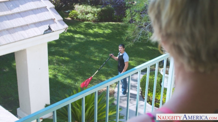 Довольно часто одинокие представительницы прекрасной половины человечества прибегают к услугам мастеров - сантехника, садовника, мастера по ремонту чего-либо и так далее. И большинство "слабых" женщин таким образом ищут себе случайных любовников - так перепихнуться разок и разойтись. Короткостриженная милф как раз из числа таких дамочек. Увидев молодого и привлекательного парня, который пришел газон привести в порядок, мамашка пригласила наемного работника зайти в дом и переоделась в наряд посексуальнее. Когда же молодой человек вошел в комнату и обнаружил женщину в откровенном прикиде, он получил щедрое предложение заняться сексом. Парень быстро променял скучное занятие на жаркий секс и остался доволен.