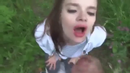 Развратная девочка с ярко накрашенными губами гуляет со своим молодым человеком. Она решила сделать ему сюрприз и со словами "я знаю хорошее место, пойдем?" привела в безлюдное место рядом с жд путями. Спутница усадила паренька на бревно, расстегнула ширинку и вытащила небольшой хуй. Не успев достать его до конца, сразу же взяла головку в рот. Особенно возбуждают ярко накрашенные губы, как они обхватывают ствол. Очень скоро быстрыми поступательными движениями головы удалось достичь предела кайфа и парень кончил девушке в рот. Как хорошая любовница она торжественно проглотила сперму.