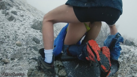 А вы когда-нибудь занимались экстремальным сексом? Если нет, но очень хотите, посмотрите пока что на секс молодой пары. Забравшись вновь на гору, ребята вновь (как и в первой части своего удивительного фильма)нашли место над обрывом и насладились телами друг друга. Любовников не остановила и плохая погода - идущий снег и легкий мороз не помешали, лишь распалили желание. Потрахав подружку в письку, мужчина вытащил анальную пробку из ануса и вонзил вместо нее твердый член.
