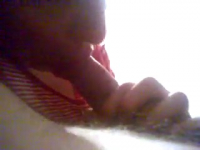 Чем бы заняться, пока единственное лицо, мешающее молодой паре заниматься сексом, это мамка парня, которая пошла готовить ужин? Пока она занята на кухне, а они пролеживают бока в гостиной через стену, самое время повеселиться и черпнуть адреналина. Так что девчонка без лишних уговоров начинает сосать член парня, не взирая на опасность появления мамки в коридоре. Минуты две она делает превосходный, хоть и неопытный минет, но крик матери о том, что пора идти ужинать, резко заставляет ее вздрогнуть, и чуть не откусить кусок хуя.