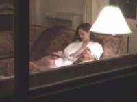 Девушки, никогда не завешивайте шторы на лоджии своих квартир. Ведь одинокие мужчины должны наслаждаться тем, как вы занимаетесь самоудовлетворением, расслаблено лежа на диване. На такое великолепное зрелище десятки мужчин с биноклями поймут, что они счастливы, что вьехали в этот дом, а другие даже смогут снять вас на камеру. Без вашего согласия правда, так что придется сделать вид, что вы смотрите телевизор, как дама из этого видео. А затем можно и вибратор достать, да подрочить хорошенько, извиваясь на кресле.