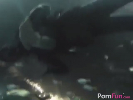 Эта баба не ищет легких путей, и пытается получить адреналин любыми способами. Она повела своего мужика в самый популярный океанариум в городе, встала на самую проходимую дорожку, где в трубе вокруг плавают милые рыбки и обслуживающий персонал в аквалангах. Впрочем, это не сильно смущает девушку, поэтому она принимается хоть и не особо палясь, но надрачивать член мужчины, а затем совсем теряет голову и собирает всю сперму ртом.