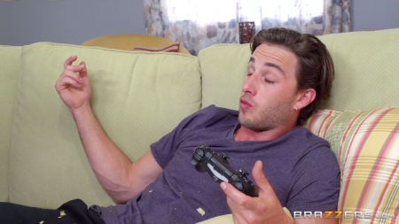Сегодня тридцатилетней домработнице было чертовски жарко, поэтому она без палева решила раздеться почти догола, оставив на себе только красные трусики. Вымыв посуду и взяв в руки пылесос, блондинка решила убраться и в той квартире, где хозяин дома играл в приставку, но слегка забыла, что одета она неподобающе. Поэтому не пала духом от внезапной встречи, и сначала сделала вид, что ничего не происходит, а затем решила отсосать член, делая вид, что это такая подготовка к сексу.