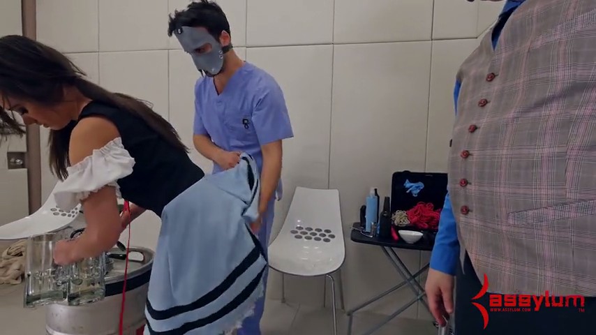 Санитары мирно скучали на дежурстве, и все шло бы по плану, если бы к ним на передержку не прислали пациентку в смирительной рубашке. Черт знает, что с ней случилось, но какая же она красива и сексуальна. Они оба быстро пришли к одинаковому выводу и стали веселиться с брюнеткой на полную катушку. Сперва засовывая медицинские инструменты ей в попку, затем подвешивая над бочкой с приклеенным на нее резиновым хуем, а затем просто стали ебать ее в задницу своими членами, напоследок кончив в ротик. И они знали, что она ничего никому не расскажет.