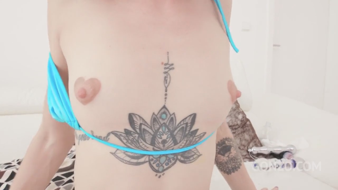 Хрупкая рыжая девчонка, кажется, попала. Это все, конечно, мило и весело - имитировать секс со зрителем, разлегшись на диване и надрачивая свой анус секс игрушками. А это голубое нижнее белье, которое можно назвать бельем с натяжкой - стринги и лифчик такого же типажа. Но вот, кто-то за кадром щелкнул пальцами, и двое верзил с монструозными хуями влетают с двух ног на сцену. Один сует по яйца свой хуище, не давая девчонке даже продохнуть, а другой с разгону засаживает толстый шланг в пердак. Девка орет, но делать нечего. А уж что с ее дырками стало после двойного проникновения - и думать-то страшно.