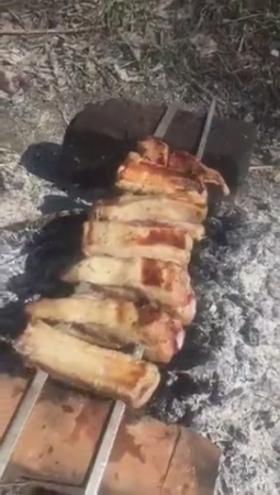 "Ну что, дорогие друзья! Приходит первомай" - наш рассказчик, и по совместительству оператор очень харизматично травит байки про рецепт для мяса, которое превратится в божественный шашлык, который будешь вспоминать всю жизнь. Для этого подойдут только лучшие свиные ребра высшего сорта, никакой закваски, красный перчик, соль, и больше ничего. "Особенно важно, если ты это делаешь на два мангала" - и тут камера переходит на пизду девушки, в которой он крутит черный фаллоимитатор, а на ее спине стоит литровый бокал пива. На этой ноте он поздравил всех с первомайскими праздниками и выключил камеру.