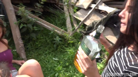 Три чешские шлюшки пьют на лавочке. Девушки абсолютно свободно себя чувствуют куря и распивая алкоголь. К подружкам подходит мужчина с видеокамерой и разводит не обремененных моральными принципами телок на секс. Ребята переместились в кусты, где парень и оттрахал подружек по очереди и снял все на камеру.