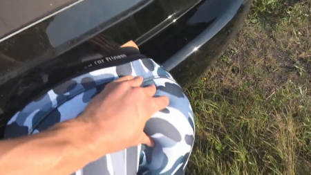 Разложил жену на багажнике и трахает в жопу