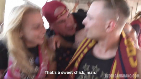 Полная безысходность. Так вышло, что ты едешь со своей девушкой в трамвае, и кругом кроме как болельщиков никого нет. Ни единой бабушки или дедушки, только жесткие парни с шарфами в футболках и шортах любимой команды. Их штук пятнадцать и они так рады победе своей команды, что им захотелось как минимум кого-нибудь напиздить. "Ооо, единственная девка в вагоне!" - воскликнул один из них, и ты решительно уводишь девчонку с собой в туалет, чтобы спрятаться от головорезов. Но не тут-то было, маргиналы вскрывают дверь, выкидывают тебя из санузла и начинают ебать толпой твою девочку. Ты ничего не можешь сделать, но... нужно ли? Увидев ее довольное лицо, ты понял, что она та еще шлюха, да и болельщики пожалели в конце пацана и выкинули голую шлюху из вагона.