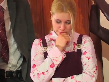 Девушка во время перерыва зашла в отдельную комнату, где обычно сотрудники курят. Оглядевшись по сторонам, она сходу стала ласкать свою киску, постанывая от нахлынувшего наслаждения. Докурив, она продолжила мастурбировать, но не заметила что начальник сидит в этой же комнате и смотрит на нее. Несколько раз мужчина попытался покашлять, чтобы привлечь внимание бесстыдницы, но она так увлеклась, что ничего уже не замечала. Тогда он уже сам подошел к ней и прекратил разврат. Угрожая статьей, работодатель стал отчитывать бедную сотрудницу, которая уже вся была в слезах, ведь увольняться она бы не хотела. Тогда начальник достал свой член и стал принуждать подчиненную к сексу. Сперва она сопротивлялась, но ощутив в своей попке член сразу успокоилась, такие крайние меры помогут ей ненадолго решить проблему с постоянным желанием мастурбировать на рабочем месте.