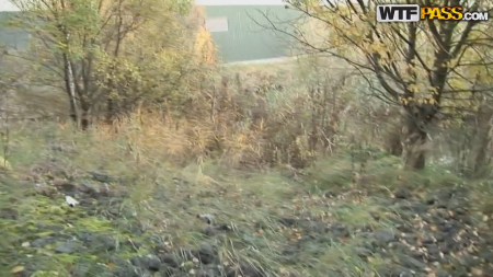 Охотник на легкодоступных жертв женского пола вышел прогуляться с камерой в поисках извращенной незнакомки, которая согласиться переспать с ним в любом месте, даже на улице. Ему на глаза попалась девушка с крашеными черными волосами, которая выбирала плитку на уличном стенде. Мужчина начал вести разговор о плитке, узнал что она напольная и какая нравится затеявшей ремонт девушке. Парень ей сразу понравился, телочкам нравится подвешенный язык у молодых людей. Разговорившись она дала понять, что не против пошалить в ближайшем лесочке и что нравится эксгибиционизм в легкой форме. Вместе пара направилась в сторону парка со множеством деревьев, а самка иногда оголялась публично, дразня оператора. Добравшись до подходящей точки они заметили парня на велосипеде, он стоял спиной, но заниматься сексом при нем - просто не вариант. Тогда ребята отправились немного подальше, где чернявая эксгибиционистка заявила, что всего один раз трахалась публично и это интересно попробовать вновь. Чтобы никто потом ничего не заподозрил и были пути отхода, мужчина расстелил плед с фруктами, на который и встала рачком брюнетка, предварительно попробовав член нового знакомого на вкус. Удивительно как мало спермы выделилось из пениса в самом финале.